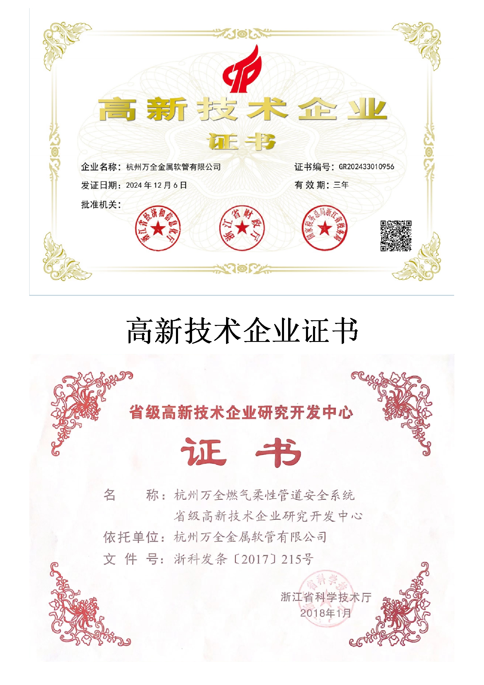 省级高新技术企业研究开发中心证书